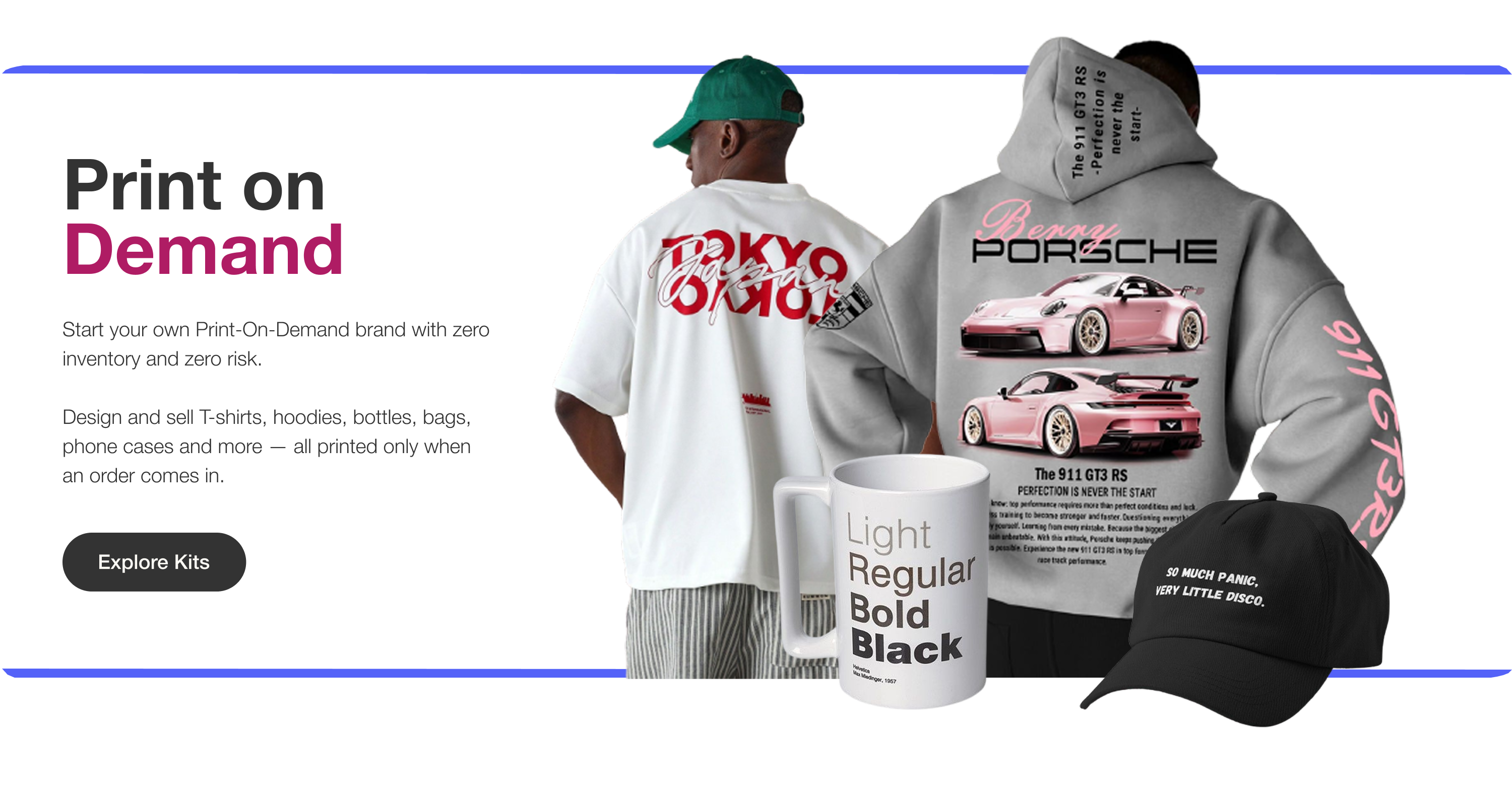 Your complete POD kit arrives within seven business days, ready for store launch.
